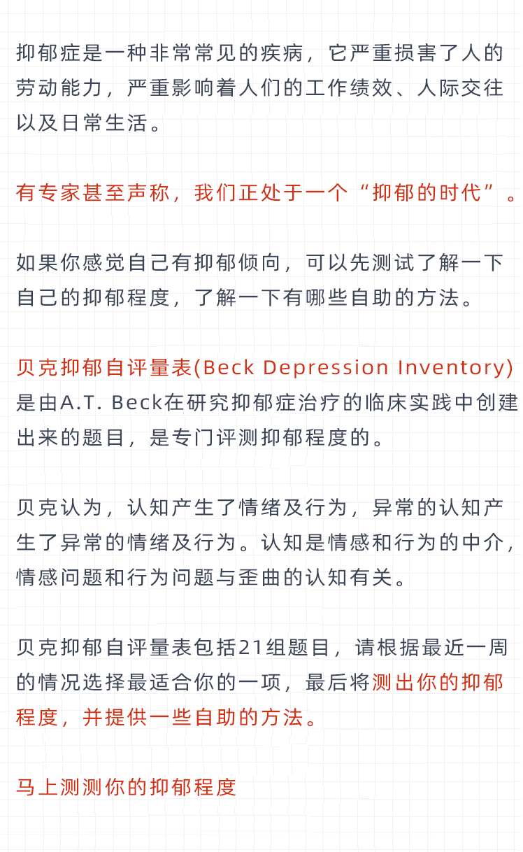 贝克抑郁自测表(免费)